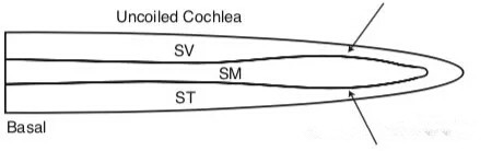 患者,女,67歲,右側(cè)耳鳴、耳悶和漸進(jìn)性聽力下降多年,陣發(fā)性眩暈發(fā)作數(shù)次,且發(fā)作時(shí)右側(cè)耳鳴和耳悶加重。<br /> 耳蝸電圖和前庭功能評(píng)估結(jié)果均提示右側(cè)異常。內(nèi)耳核磁診斷為右側(cè)前庭和耳蝸內(nèi)淋巴積水。<br /></span><p><span style="font-size:16px;"> 臨床診斷為右側(cè)<strong><span style="color:#3333ff;">梅尼埃病</span></strong>。該患者純音聽閾測(cè)試結(jié)果如下:</span></p><p><span style="font-size:16px;"><img src="/upfiles/201902150917549355.jpg" alt="" /><br /></span></p><span style="font-size:16px;"> 圖1<br /> 報(bào)告解析<br /> 該患者純音聽力報(bào)告示右側(cè)250-8000Hz測(cè)試全頻段中重度感音神經(jīng)性聽力損失,基本呈現(xiàn)勺狀聽力曲線。<br /> 左側(cè)250-4000Hz純音聽閾正常,4000Hz以后的高頻段出現(xiàn)輕中度聽力損失。<br /> 梅尼埃病患者純音聽力圖特點(diǎn)<br /> 梅尼埃病,大家并不陌生,以眩暈、聽力下降、耳鳴和耳悶脹感、為主要臨床表現(xiàn)。<a href="http://m.caosairsoft.com/listDetail.aspx?id=102574" target="_blank"><span style="color:#3333ff;"><strong>耳鳴不干預(yù),嚴(yán)重者會(huì)導(dǎo)致聽力障礙!</strong></span></a>早期多表現(xiàn)為單耳低頻聽力下降,隨著病程發(fā)展,可逐步發(fā)展成全頻段的聽力下降,可累及雙側(cè)。梅尼?;颊呗犃η闆r如何,純音聽力圖會(huì)有哪些特點(diǎn)?<br /> <a href="http://m.caosairsoft.com/listDetail.aspx?id=102595" target="_blank"><span style="color:#3333ff;"><strong>碰上最糾結(jié)的這四種聽力損失,該如何干預(yù)?</strong></span></a><br /> 國(guó)外學(xué)者早在1967年就對(duì)332位梅尼埃病患者的純音聽力圖進(jìn)行分析和總結(jié),他們發(fā)現(xiàn):<br /> 01<br /> 以平坦型聽力曲線最常見(60%),其次為上升曲線(17%)和下降曲線(12%)。患者平均聽力損失為52dBHL。上升和谷型聽力曲線形態(tài)的患者平均病程持續(xù)時(shí)間最短。<br /> 02<br /> 聽力損失在第一年里發(fā)展較快,之后下降程度較小。<br /> 03<br /> 聽力波動(dòng)出現(xiàn)在所有聽力曲線類型當(dāng)中,但是在上升和谷型曲線中較為常見。50%的患者存在聽力波動(dòng),與病程長(zhǎng)短無(wú)關(guān)。聽力波動(dòng)最多見于250-1000Hz。就所有頻率而言,聽力波動(dòng)平均為20-30dB。<br /> 04<br /> 14%患者雙側(cè)發(fā)病,在這些患者中50%是雙側(cè)同時(shí)發(fā)病,或者雙耳前后發(fā)病,之間不超過(guò)一年;剩下的50%兩側(cè)發(fā)病間隔時(shí)間最長(zhǎng)可達(dá)20年。<br /> 05<br /> 77%的患者51歲之前發(fā)病。<br /> 06<br /> 發(fā)病最常見的形式是聽力損失和眩暈同時(shí)發(fā)生。眩暈單獨(dú)作為首發(fā)癥狀的占到37%。22%為聽力損失單獨(dú)發(fā)生,這其中2/3的患者在聽力損失出現(xiàn)的一年后或更長(zhǎng)時(shí)間出現(xiàn)首次眩暈。<br /> 近年,臨床研究人員發(fā)現(xiàn)部分梅尼埃病患者的純音測(cè)聽結(jié)果在低頻區(qū)(250,500和1000Hz)存在氣骨導(dǎo)差。2014年,Lee等人在收集到的337名梅尼埃病患者中(所有患者已通過(guò)耳鏡和聲導(dǎo)抗檢查排除外中耳病變)發(fā)現(xiàn)47人(13.9%)存在低頻氣骨導(dǎo)差(Low frequency air bone gap , LFABG)。<br /> LFABG的確認(rèn)標(biāo)準(zhǔn)為:250、500和1000Hz三個(gè)頻率中連續(xù)兩個(gè)頻率存在氣骨導(dǎo)差,或者三個(gè)頻率氣骨導(dǎo)差均值大于或者等于10dBHL,則認(rèn)為該患者存在LFABG。數(shù)據(jù)分析得出:這部分患者的LFABG為17.0±7.8dB,三個(gè)頻率(250、500和1000Hz)的氣骨導(dǎo)差分別為25.9±11.3,11.9±9.6, and 13.5±9.4 dBHL 。有17名患者三個(gè)頻率均存在大于10dB的氣骨導(dǎo)差,30名患者為兩個(gè)頻率存在大于10dB的氣骨導(dǎo)差。對(duì)47名患者隨訪發(fā)現(xiàn)有3名患者LFABG發(fā)生了2次,但是只有1名患者持續(xù)存在LFABG。對(duì)側(cè)耳存在LFABG的情況存在于其中的8名患者。<br /> Q為什么部分梅尼埃病患者會(huì)存在LFABG?A<br /> 研究人員推測(cè)可能與一下兩點(diǎn)相關(guān):<br /> ?、賰?nèi)淋巴積水造成內(nèi)淋巴壓力增加,進(jìn)而降低鐙骨的活動(dòng)度,最終導(dǎo)致氣導(dǎo)閾值變差;<br /> ②前庭內(nèi)淋巴積水導(dǎo)致球囊膨脹,直接對(duì)鐙骨底板產(chǎn)生作用力,進(jìn)而導(dǎo)致鐙骨活動(dòng)度降低。<br /> 梅尼埃病(內(nèi)淋巴積水)為什么會(huì)造成聽力下降?<br /> 在梅尼埃病的病理病因分析當(dāng)中,內(nèi)淋巴積水研究最多,最為深刻。<br /> 研究人員針對(duì)內(nèi)淋巴積水造成聽力損失的可能發(fā)生機(jī)制做出了較為詳盡的解釋。<br /></span><p><span style="font-size:16px;"> 膜性耳蝸迷路中的流體動(dòng)力學(xué)對(duì)于耳蝸的正常功能至關(guān)重要。如果流體系統(tǒng)不能充分發(fā)揮作用,可能會(huì)導(dǎo)致內(nèi)耳疾病,梅尼埃病就是其中之一。內(nèi)淋巴積水會(huì)導(dǎo)致蝸管內(nèi)壓力增加,主要對(duì)基底膜的機(jī)械動(dòng)力產(chǎn)生影響,即導(dǎo)致基底膜振動(dòng)偏移幅度減小。有人推測(cè),蝸管內(nèi)增加的壓力可能對(duì)耳蝸的頂端影響較大,因?yàn)轫敹说幕啄哦容^小,更易受到壓力影響(圖2和圖3)。基底膜頂部壓力的增加可能直接影響患者耳蝸對(duì)低頻聲的處理,也就可以解釋為什么梅尼?;颊咴缙谝缘皖l聽力下降為主。</span></p><p style="te