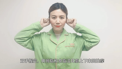 雙手握空,用拇指和食指沿耳廓上下來回推摩,直至耳廓充血、發熱。