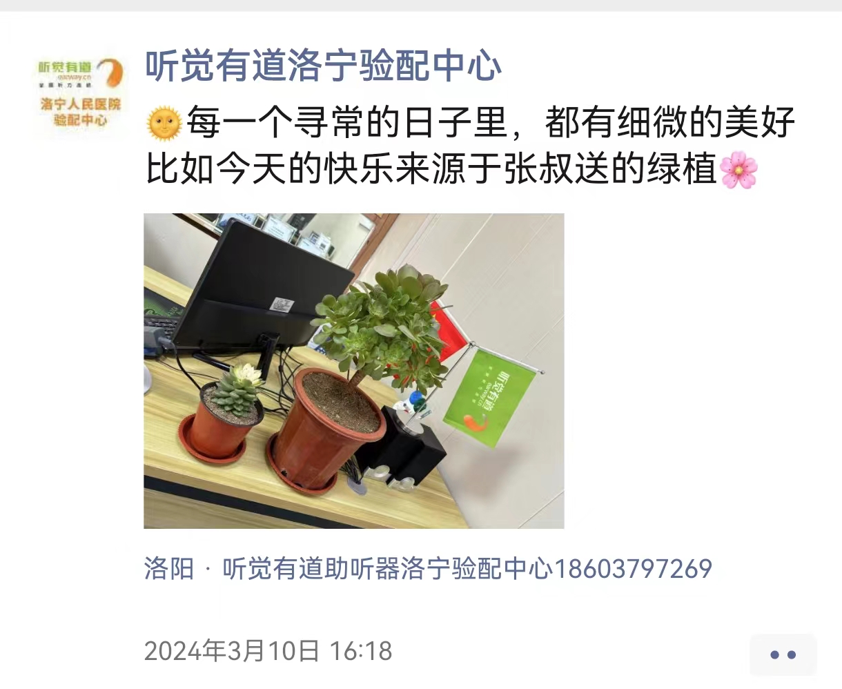 <span style="white-space:pre"> </span>又是一年春好處。<br /><br /> 每年春天,張叔的花攤上總是擺滿各種絢爛奪目的花兒。每一片花瓣,都像是一抹柔和的微笑,讓人感到平靜和溫暖。<br /><br /> <strong>張叔靠花草養家<br /></strong><br /> 張叔是個養花人,今年70歲,家住王東小區。<br /><br /> 張叔說,在兒子還很小的時候,自己沒有別的手藝,就是喜歡擺弄那些花花草草。<br /><br /> 經過他“伺候”過的花草,都開得特別好。當時他就有一個想法:不如拿它們來養家糊口吧。<br /><br /> 然而,那時家人和親戚都不太支持他這個想法,認為這是不務正業的。<br /><br /> 畢竟,在那個年代,柴米油鹽很貴,找個穩定正經的工作,順順當當地養活家人,才是最重要的。<br /><br /> “但是,養好花花草草也是一門職業技術啊!”<br /><br /> 張叔下定決心,要把養花作為一生的工作。<br /><br /> 他開始每天鉆研各種養殖花草的資料,向別人請教怎樣養花種草,問大家都喜歡什么樣的花。<br /><br /> 張叔有一輛電動三輪車,無論是去縣城周邊,還是到遠點的地方趕集,他都會騎著三輪車,載著滿滿一車的花草過去。<br /><br /> 夏天的雨很大,他仍舊拉著一堆花草守在集市里。<br /><br /> 冬天的風很冷,他總在落日時分才踏上回家的路。<br /><br /> 日復一日,年復一年,家人們看到了張叔的熱愛與堅持,便不再反對了。<br /><br /> “不夸張地說,這些年我記的筆記,可以用堆積如山來形容!”<br /><br /> 說這句話時,張叔滿臉的驕傲。他不僅把花草養得很好,也靠它們把家人都養得好好的。<br /><br /></span><p><span style="font-size:16px;"> 也許,家人就是他心中最重要的“那些花兒”。</span></p><p><span style="font-size:16px;"><br /></span></p><p style="text-align: center;"><img src="/upfiles/202403150130547329.jpg" width="640" alt="" /><br /></p><p><br /></p><span style="font-size:16px;"> <strong>跨越數百里的信任</strong><br /><br /> 我們和張叔結識是在2023年。<br /><br /> 當時我們到大原做聽力科普宣傳,經過張叔的花攤。<br /><br /> 他戴著個帽子,不胖不瘦,個子高高的,愛說愛笑。<br /><br /> 作為助聽器驗配師,我們很容易就注意到他左耳戴著一臺耳背機。<br /><br /> 但他跟別人說話時,還是顯得很吃力。<br /><br /> 我們停下腳步,跟他聊天交流,了解他的聽力情況,希望能給他帶來一些力所能及的幫助。<br /><br /> 張叔的右耳因為從小中耳炎,現在一點聽力都沒有了。<br /><br /> 他左耳的聽力,也在十幾年前下降得厲害。<br /><br /> 左耳的耳背機是10年前在洛陽三院買的,之后一直沒有保養過。<br /><br /> 張叔見我們是專業配助聽器的,把助聽器拿給我們檢查。<br /><br /> 接過助聽器,我們發現它耳鉤里面有冷凝水,做了仔細的清潔保養,并給張叔講了一些日常保養維護助聽器的方法。<br /><br /> 為了助聽器更穩定的工作,我們也建議張叔定期到驗配中心進行保養,我們為聽損朋友提供免費服務。<br /><br /> 之后大半年,張叔有時間就會到我們聽覺有道洛寧人民醫院驗配中心保養助聽器,同時來聊聊家常。<br /><br /> 一般的助聽器使用壽命是5到8年,而張叔的助聽器戴了有10年,現在音質和功率都不太能滿足他現在的聽力狀況了。<br /><br /> 張叔想換一臺新的助聽器,并最終選擇了聽覺有道。<br /><br /> “我觀察了好久,對你們的為人處世,還有你們公司的品牌售后,都是比較認可的。”<br /><br /> 2023年10月,我們邀請張叔到店參加專家日活動,體驗新款的助聽器。<br /><br /> 那段時間,張叔去了西安,參加親戚的婚禮。<br /><br /> 出于對我們的支持和信任,張叔讓兒子連夜載他從西安回洛寧,橫跨幾百公里。<br /><br /> 第二天,他準時到店參加活動,并且配了一臺Beltone Rely系列助聽器。<br /><br /> 2024年3月10日,張叔送來了兩盆親手種的綠植,讓我們在這個春天收獲了一份獨特的美好。<br /></span><p><span style="font-size:16px;"><br /></span></p><p style="text-align: center;"><span style="font-size:16px;"><img src="/upfiles/202403150131189662.jpg" width="640" alt="" /><br /></span></p><p><span style="font-size:16px;"><br /></span></p><span style="font-size:16px;"> <strong>熱愛永不改變</strong><br /><br /> 有一天,張叔來保養助聽器。<br /><br /> 我問他,現在生活好起來了,兒子有了自己的工作,他也已是古稀之年,以后還會繼續賣花嗎?<br /><br /> 張叔點了點頭,朗聲笑了起來。<br /><br /> “當然會啊!我還是很喜歡養花,一直都沒有改變過!”<br /><br /> 文章來源:聽覺有道洛寧人民醫院驗配中心</span>" />